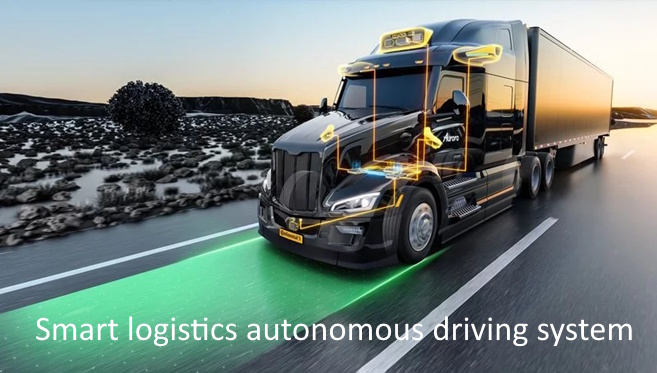 Our project develops a smart logistics autonomous driving system for trucks using a vision-language model (Mini-InternVL2-DA-DriveLM) integrated with the UC-win/Road simulator. A three-layer architecture—data perception, VLM reasoning, and control execution—transforms scene understanding into concise natural-language driving suggestions, then into throttle, brake, and steering commands. We implement prompt engineering, COM-based data capture, and real-time decision loops on modest hardware (RTX 4060 8GB). Fine-tuning with DriveGPT4-augmented datasets improves adaptability, safety, and interpretability across highways, urban roads, and ports. Scenario tests evaluate safety, compliance, comfort, and efficiency, demonstrating a feasible, explainable, and cost-effective path toward intelligent, unmanned freight transportation for future real-world deployments.