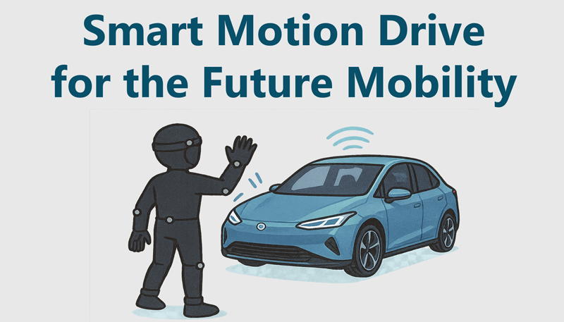Smart Motion Drive introduces an innovative interaction between people and autonomous vehicles by integrating motion capture technology with driving systems. Using Sony’s mocopi sensors attached to six body points, user motions such as raising a hand are translated into car control commands. The system supports two modes: Self-Driving Mode, enabling acceleration, turning, and stopping through gestures, and Auto-Driving Mode, allowing users to call or return a vehicle remotely. Implemented with Unity, Python, and UC-win/Road, the system empowers seniors and individuals with disabilities by promoting inclusive, joyful mobility within the Web 4.0 era, bridging digital and real-world transportation experiences.